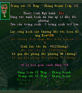 - Cập nhật thuộc tính trang bị Kháng Hoành (phó bản Cổ Tháp Bang Hội).